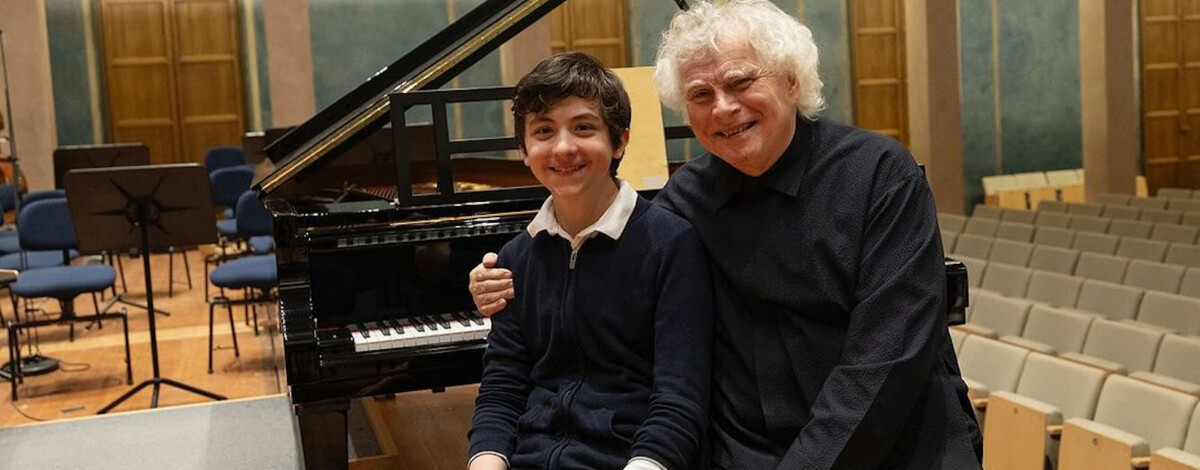 Travailler avec de jeunes musiciens est une priorité absolue pour Sir Simon Rattle. Dimanche, lors d’un concert de l’Orchestre des jeunes de Bavière à Munich, il n’a pas hésité à confier l’interprétation du Concerto pour piano de Schoenberg à un jeune pianiste prodige d’à peine 14 ans.