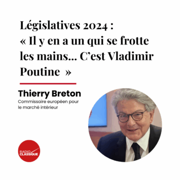 Thierry Breton a fait un rappel que certains jugeront nécessaire, ce matin à l’antenne de Radio Classique. À 6 jours du premier tour des législatives anticipées, le commissaire européen pour le marché intérieur (numérique, industrie et services, défense, espace, audiovisuel, tourisme) a pointé l’ombre qui plane sur ces élections, celle du président russe.