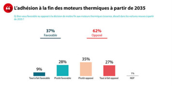 62% des électeurs sont opposés à la décision de mettre fin aux moteurs thermiques dans les voitures neuves vendues dans l’Union Européenne à partir de 2035. Par ailleurs, bien que l’écologie soit un sujet essentiel pour les futurs électeurs de La France Insoumise (60%), plus d’un soutien de LFI sur deux se positionne contre cette interdiction (56%).
